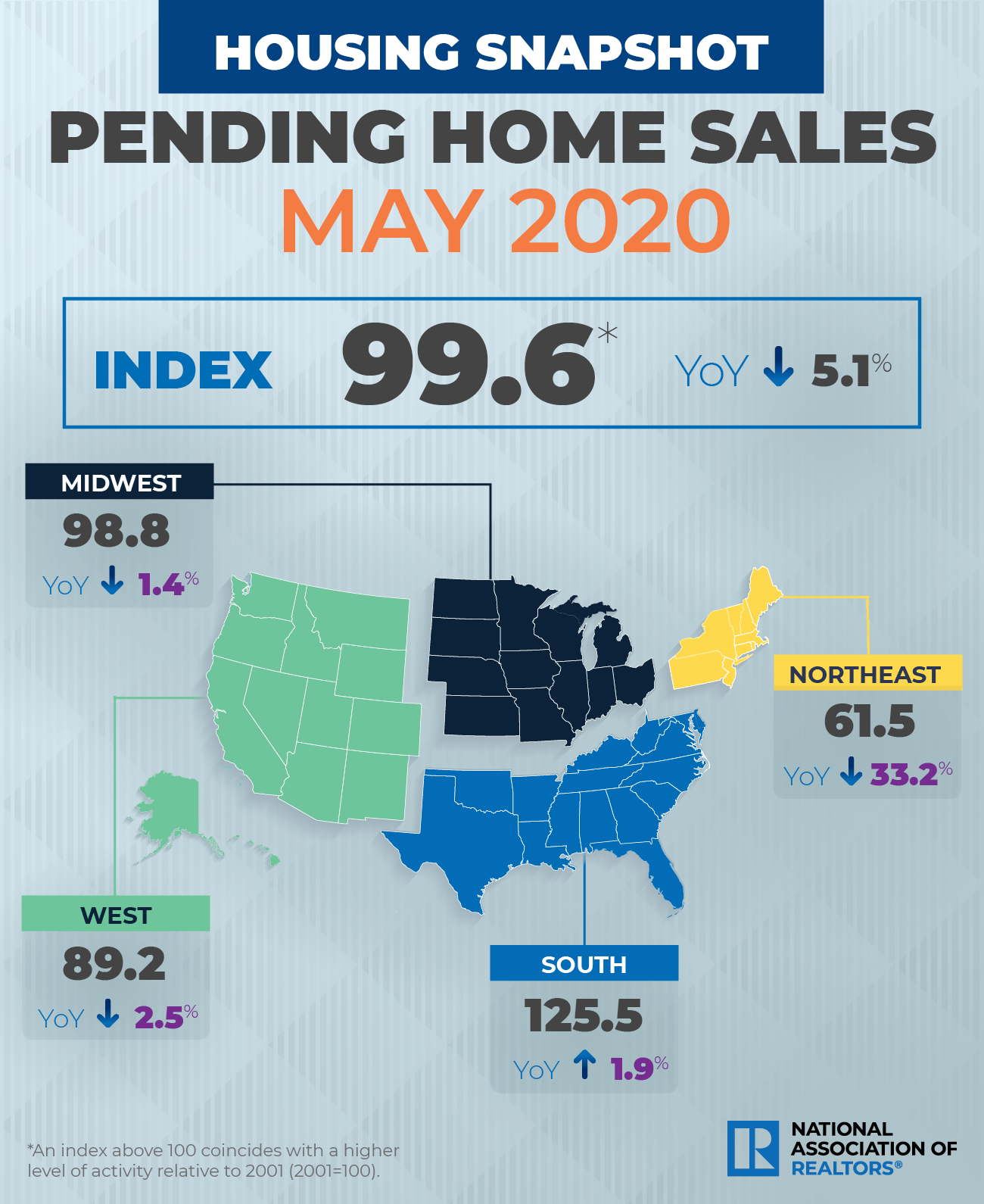 After two previous months of declines, pending home sales are showing a market rebound, with every major region recording a month-over-month increase. According to NAR, the Pending Home Sales Index (PHSI) increased to 99.6 in May—the highest MoM growth since NAR began the series in January 2001. Since the same time last year, pending home sales have fallen 5.1 percent.
