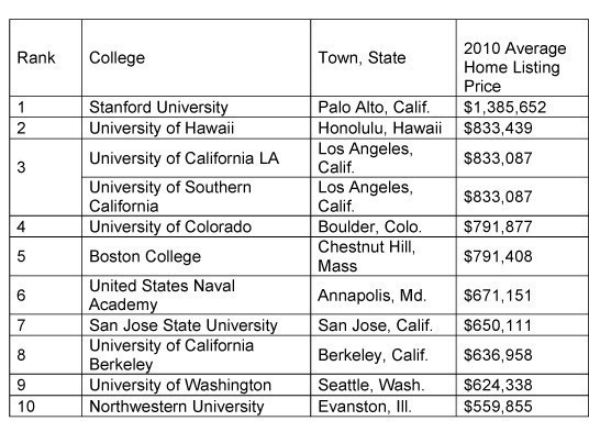 The top 10 most expensive markets in the Coldwell Banker Real Estate College Home Listing Report are: