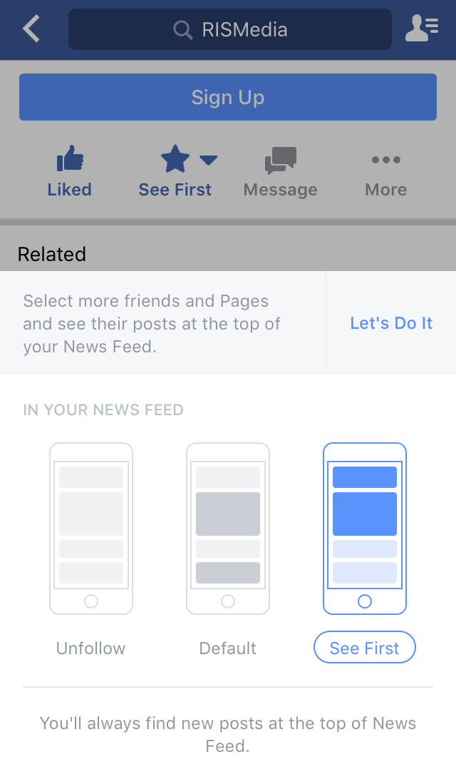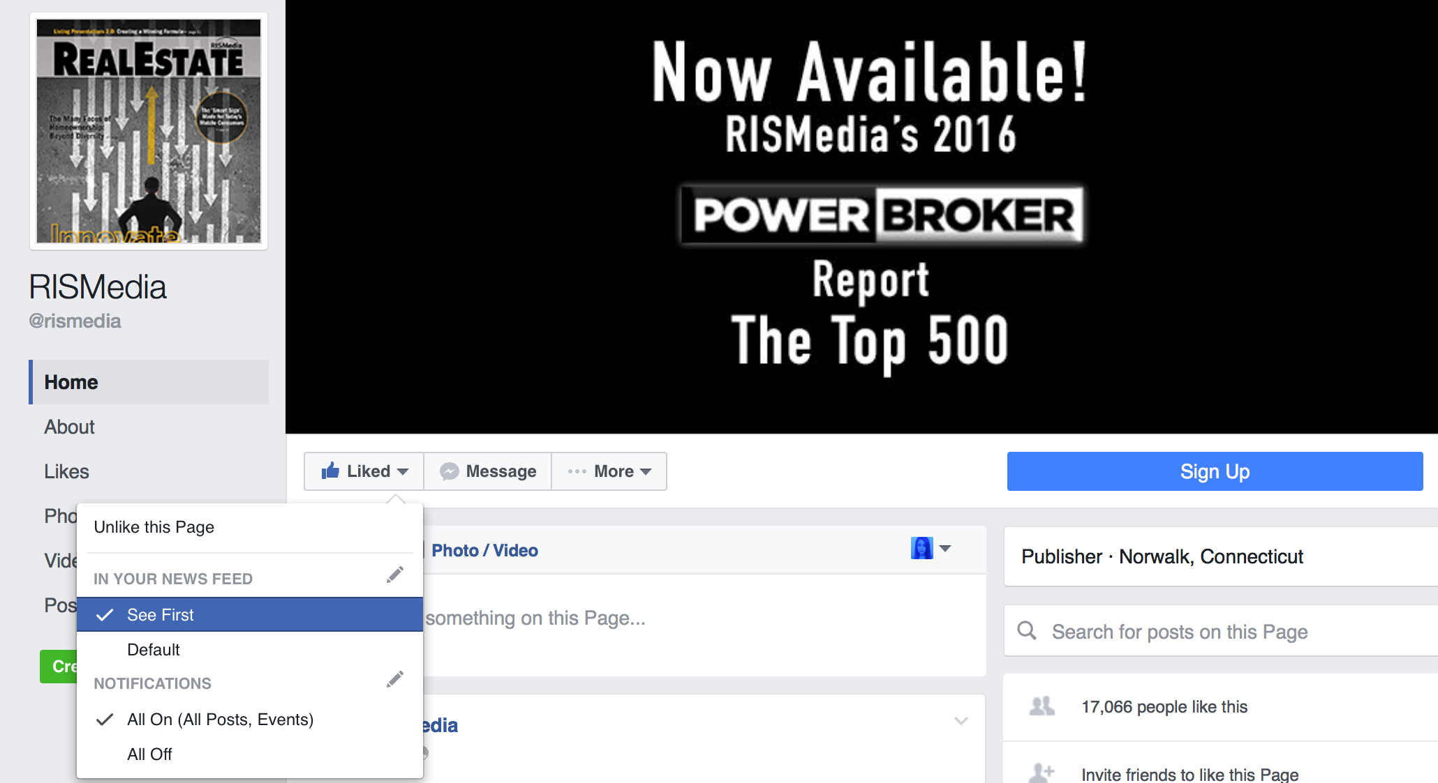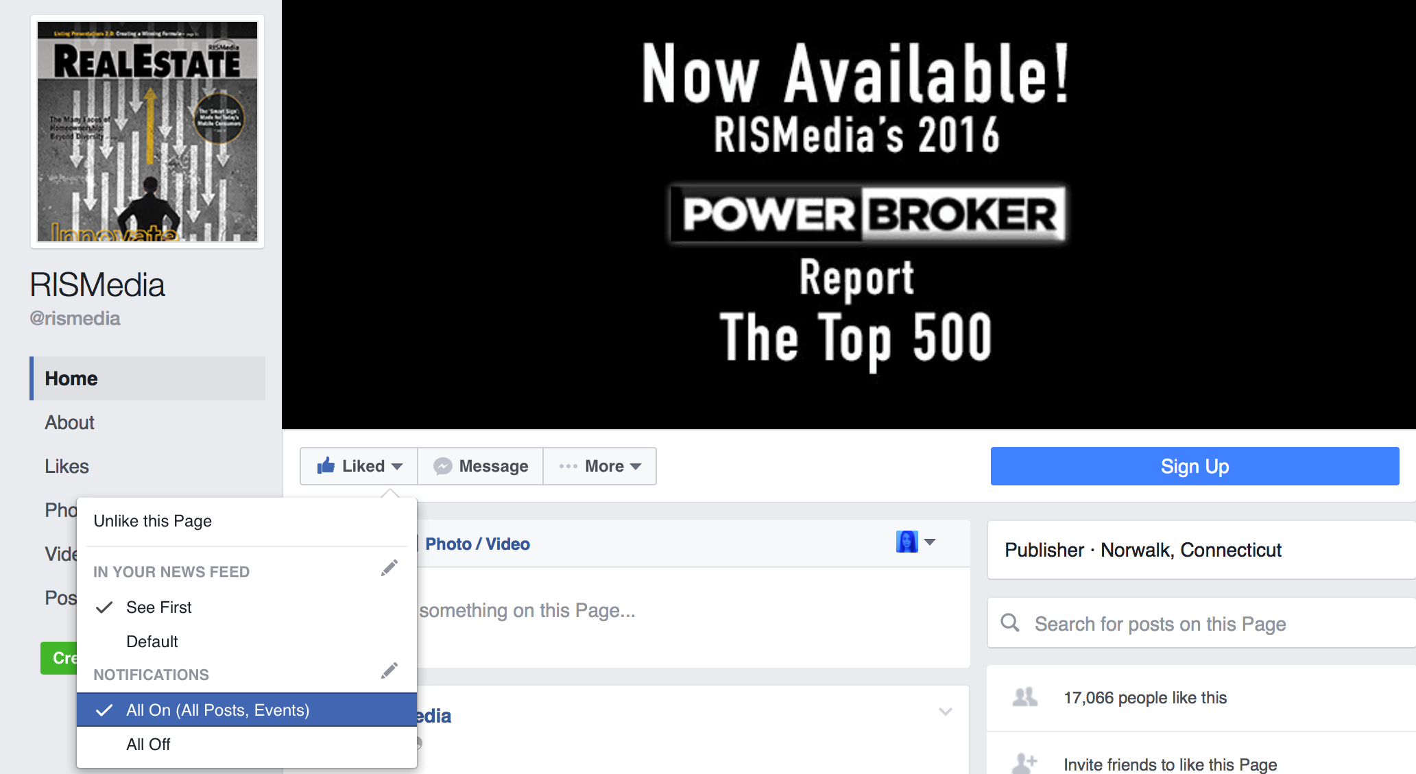 On RISMedia’s Facebook page, select Liked, then Notifications, All On (All Posts, Events).