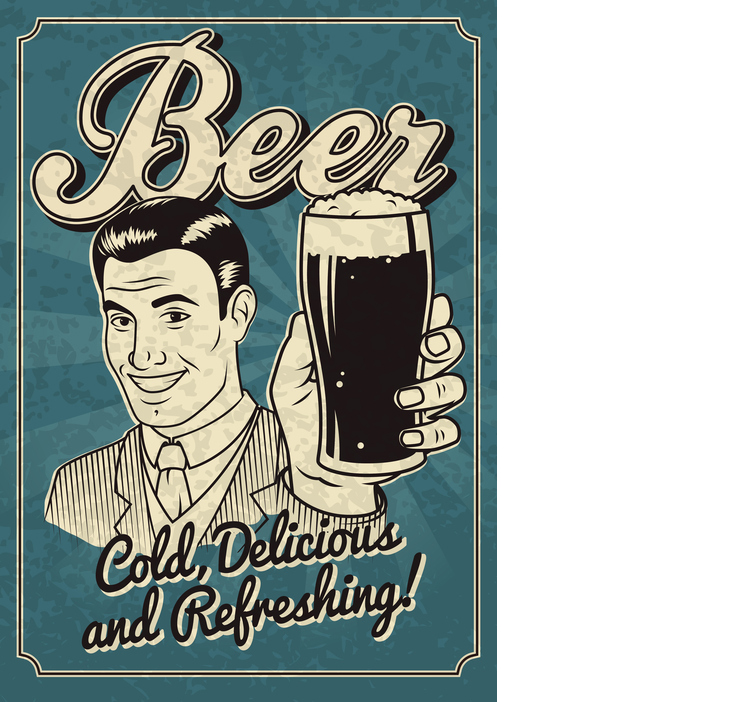 A vintage styled man holding a beer. Grunge texture is transparent and on its own layer so it's easy to turn off.