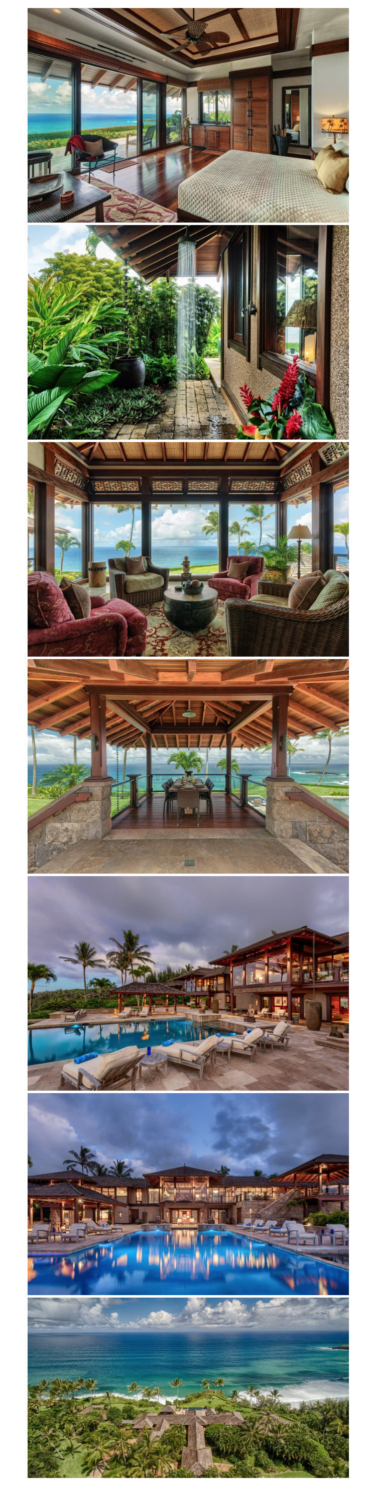 Looking for a home with some serious bragging rights? How about the most expensive home in Hawaii? Located within the Aloha State on the Island of Kauai, this North Shore estate is priced at a jaw-dropping $70 million. Listed by Neal Norman of Hawaii Life, the home is comprised of four Balinese-inspired pavilions roosting just above a secret beach. Also included are epic views of the Pacific Ocean, a main house, two guest houses and a caretaker’s residence.