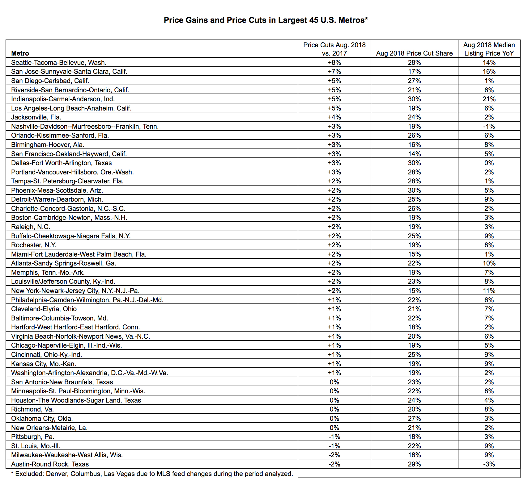 Meanwhile, price cuts are on the rise, especially in pricey markets where inventory is rising. The proportion of listings that feature price cuts rose 1.5 percentage points in the last year to 19.1 percent in August. The share of price cuts among listings is now 1.5 times more prevalent than in August 2012 when 13 percent of listings featured price discounts. This upward movement was more pronounced in major metropolitan areas in the last year including: Seattle with an 8 percent increase in cuts; San Jose with a 7 percent increase; and a 5 percent increase in San Diego, Riverside, Indianapolis and Los Angeles. In fact, 39 of the 45 largest markets saw an increase in the share of price cuts over last year.