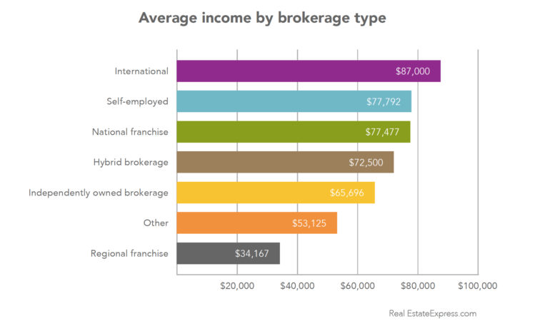 That depends—not every brokerage is created equal. Each brokerage has a unique set of values, business philosophy and ethos that can impact your experience as a real estate professional. There are quantitative differences between brokerages too. The survey revealed an agent’s income can more than triple depending on the kind of brokerage they’re connected to. Agents at regional franchises reported annual incomes of $34,167, while agents at international brokerages reported earning $87,000 annually.