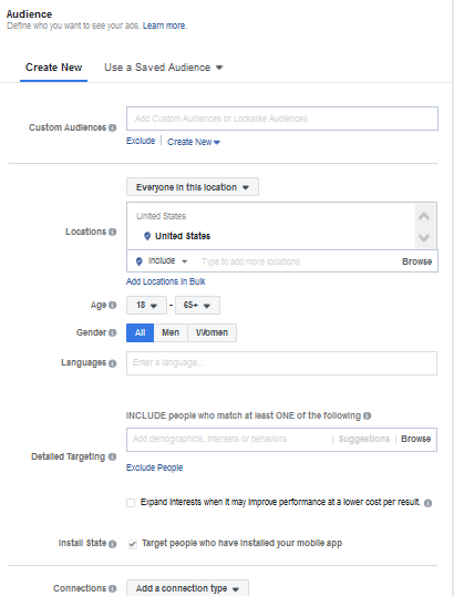 Once that’s completed, you’ll come to the “Audience” section. This is where you’ll identify who you want to see your ads.