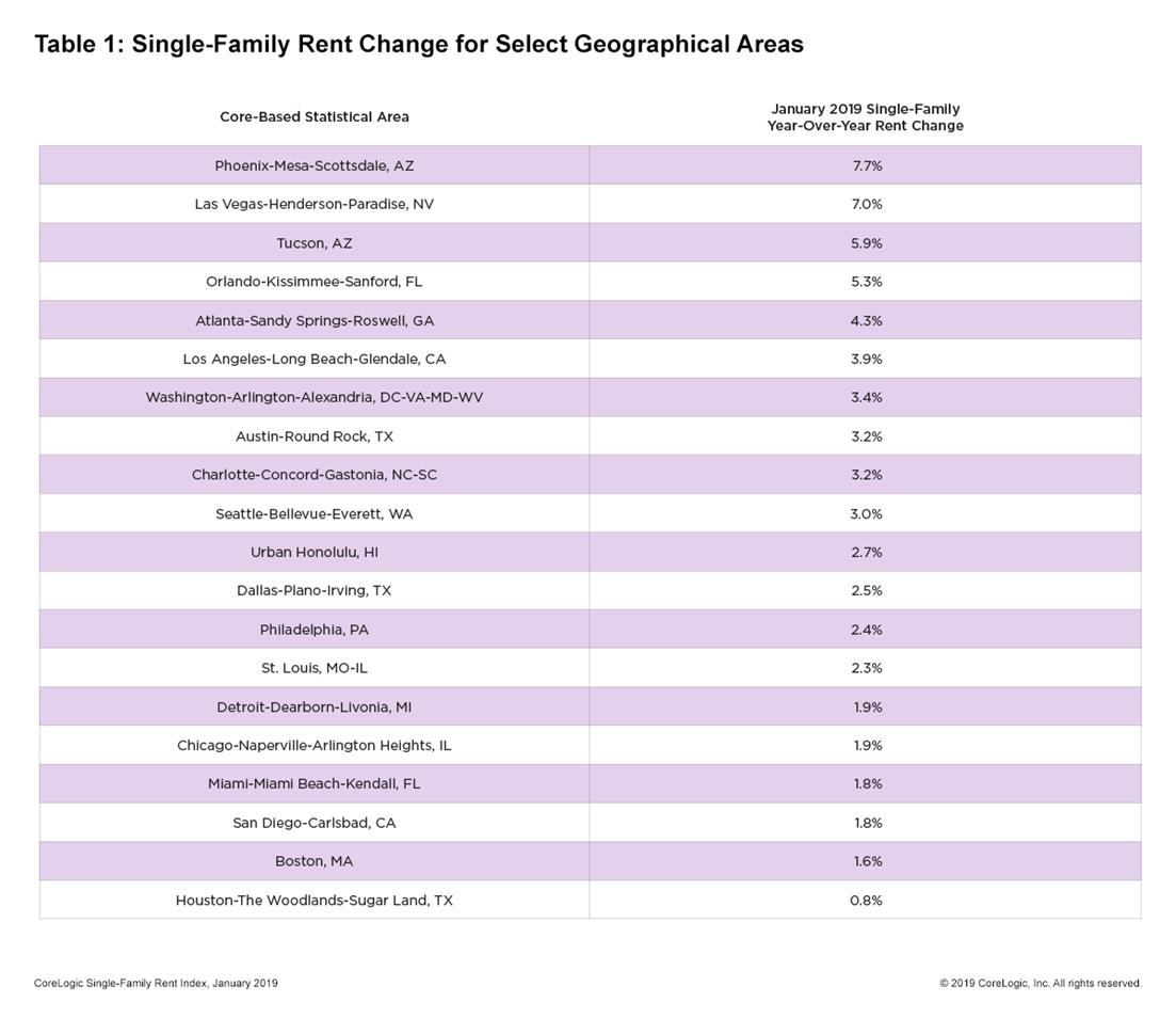 According to CoreLogic’s Jan. 2019 Single-Family Rent Index (SFRI), rents are up 3.2 percent year-over-year—the fastest since 2016.