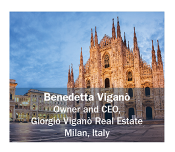 Being prepared to do business in a global environment is critical to Viganò’s success, she explains. “Italy has signed the Reciprocity Act; therefore, almost anyone can buy here, if an Italian can buy in their countries,” she explains. “Opportunities are many, and surely, the most important (factor) is word-of-mouth. If you sell a property to a foreign buyer, he or she will certainly refer your company to their friends and clients because they know you are an expert, and they trust you because you respect their culture.”