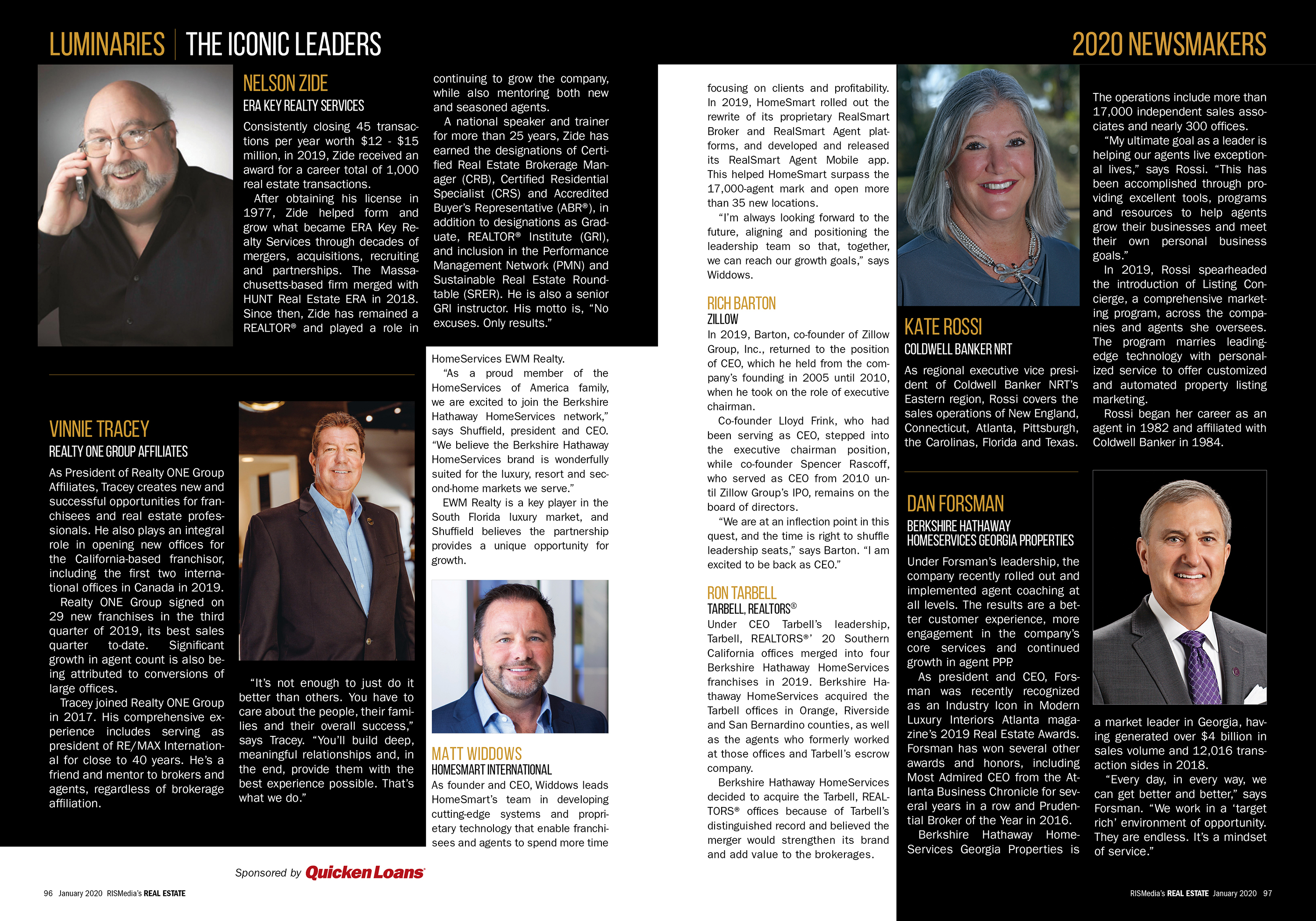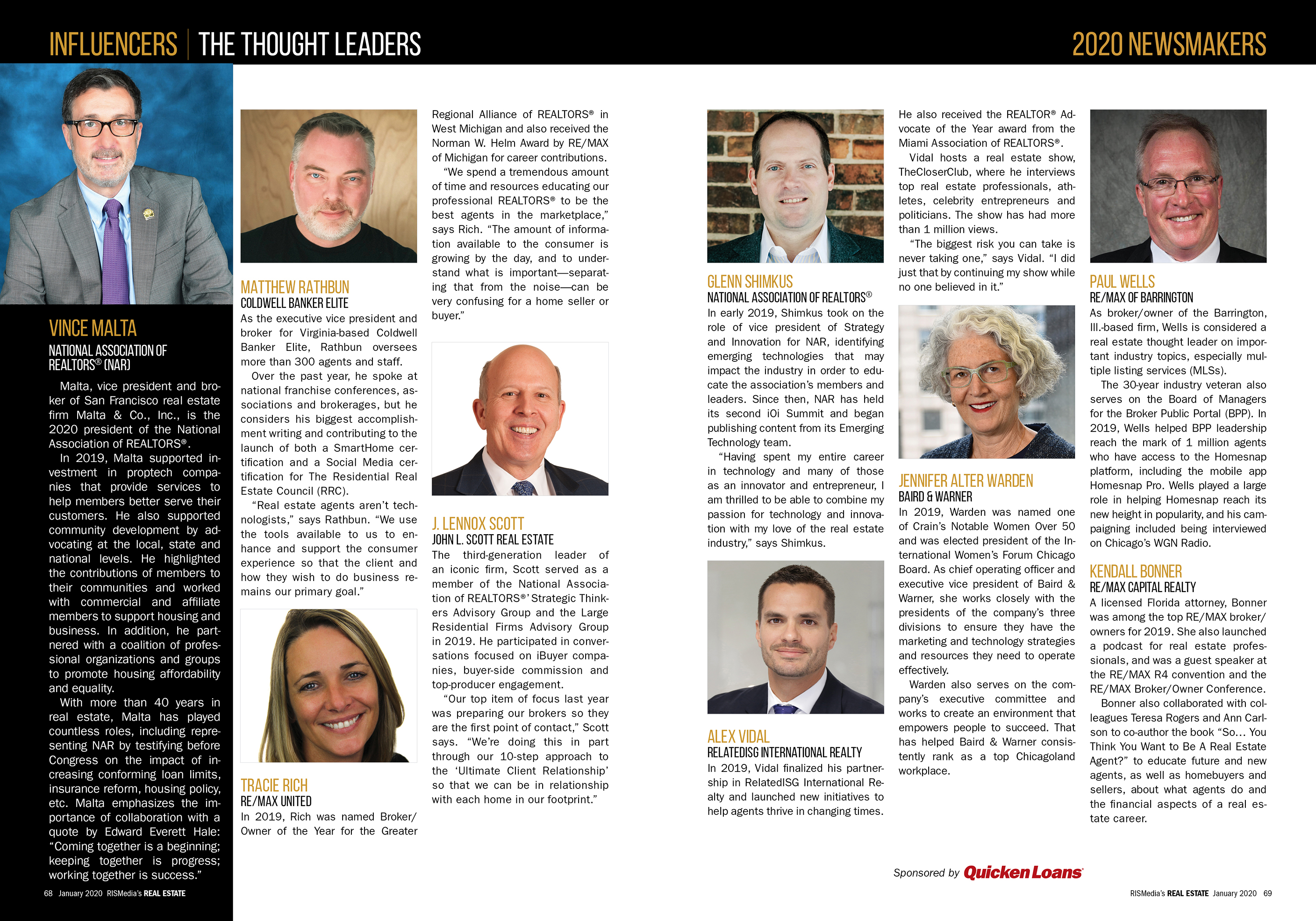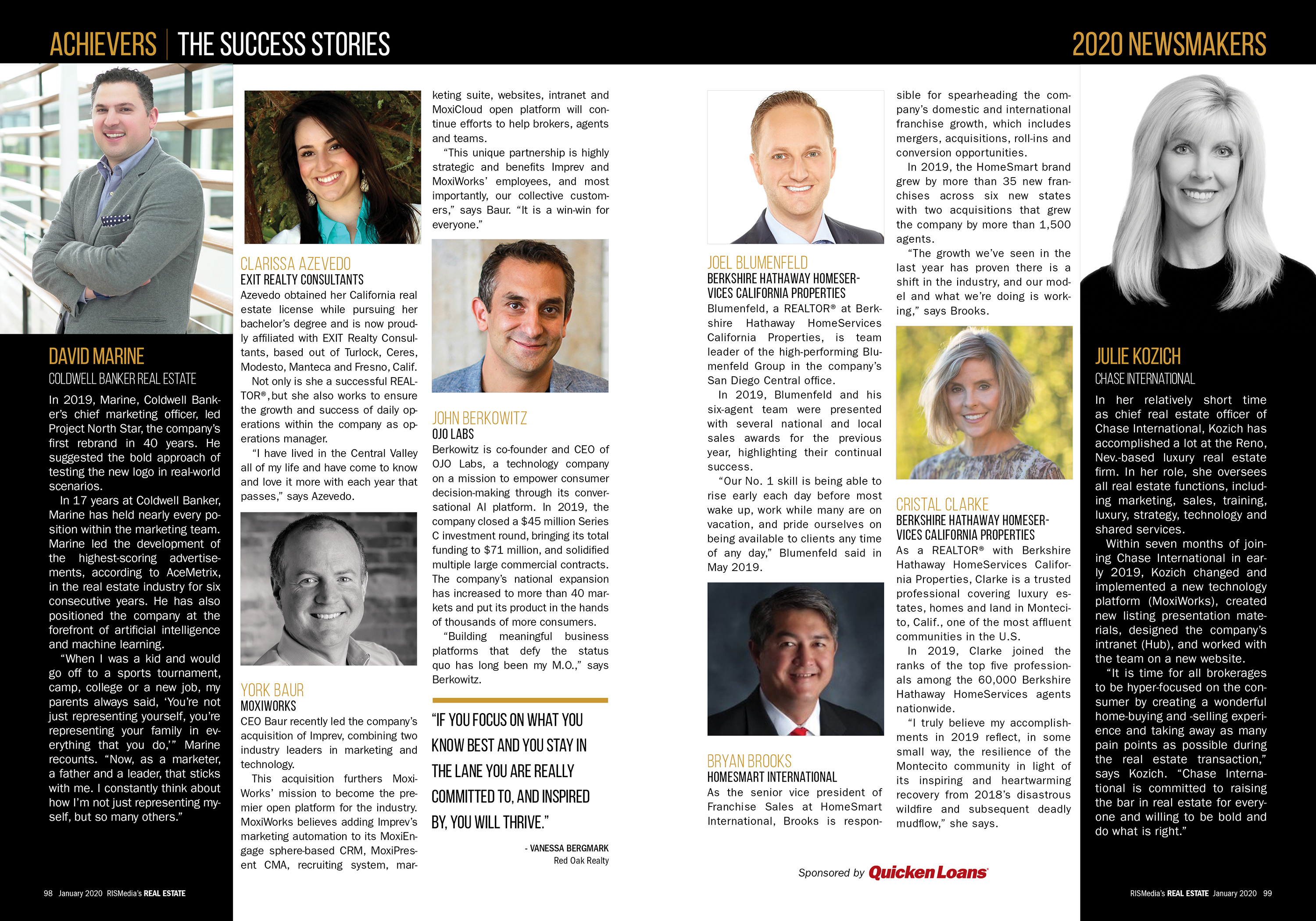 In the January issue of RISMedia’s Real Estate magazine, you’ll find the Newsmakers showcase, highlighting those recognized this year. To access by category, turn to: