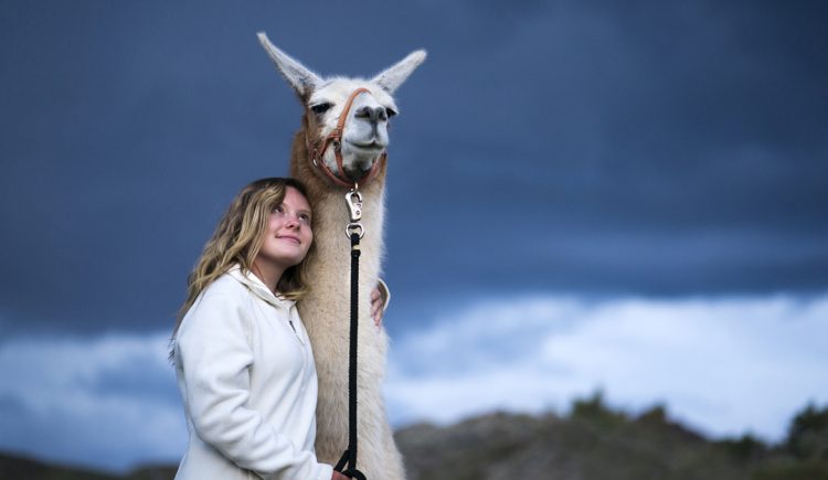 When she took a cocoa brown llama named Mocha for a walk, she leaned in close for a selfie and rested her cheek on the friendly camelid’s forehead.