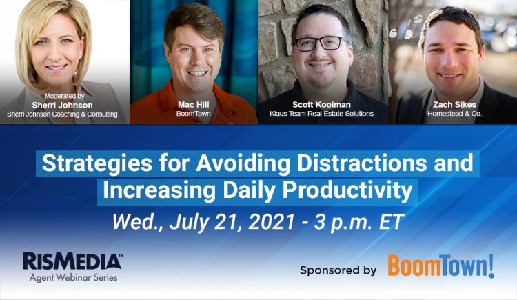 Join RISMedia and our sponsor BoomTown, along with moderator Sherri Johnson, for a can’t-miss webinar to gain insights into how you can stay laser-focused on money-making activities, in spite of life’s many distractions.