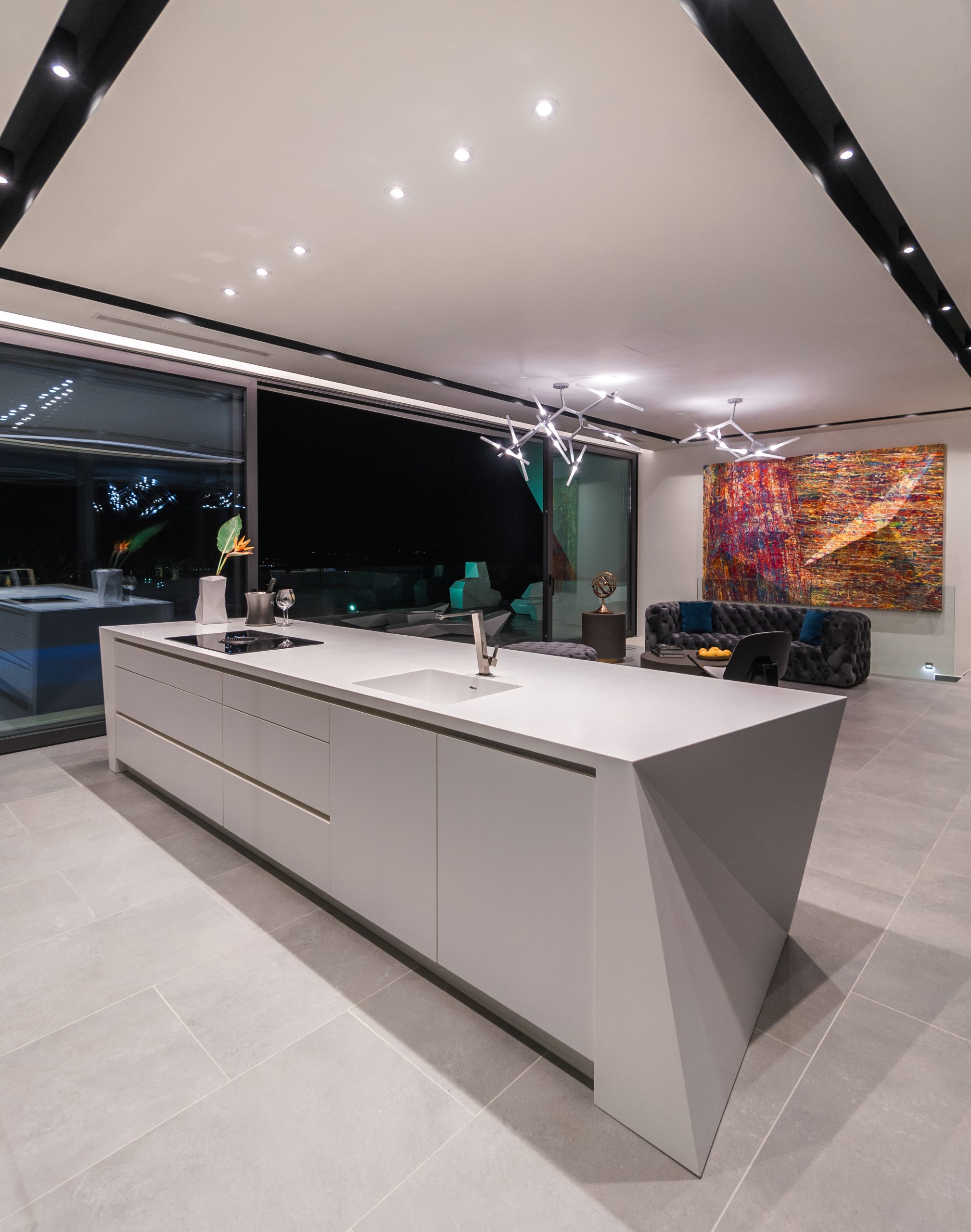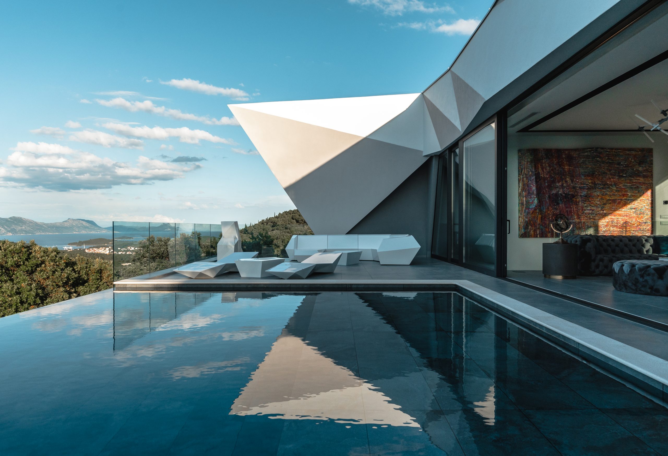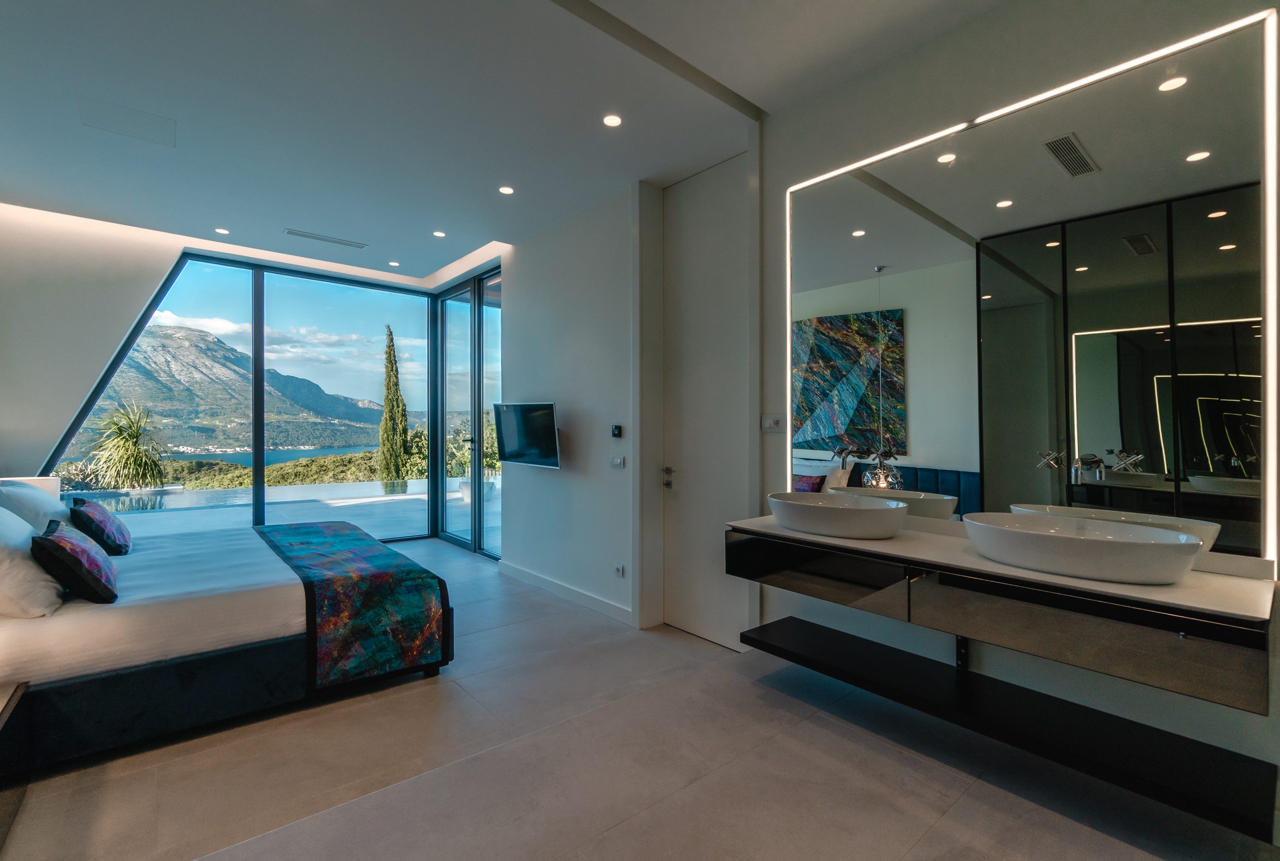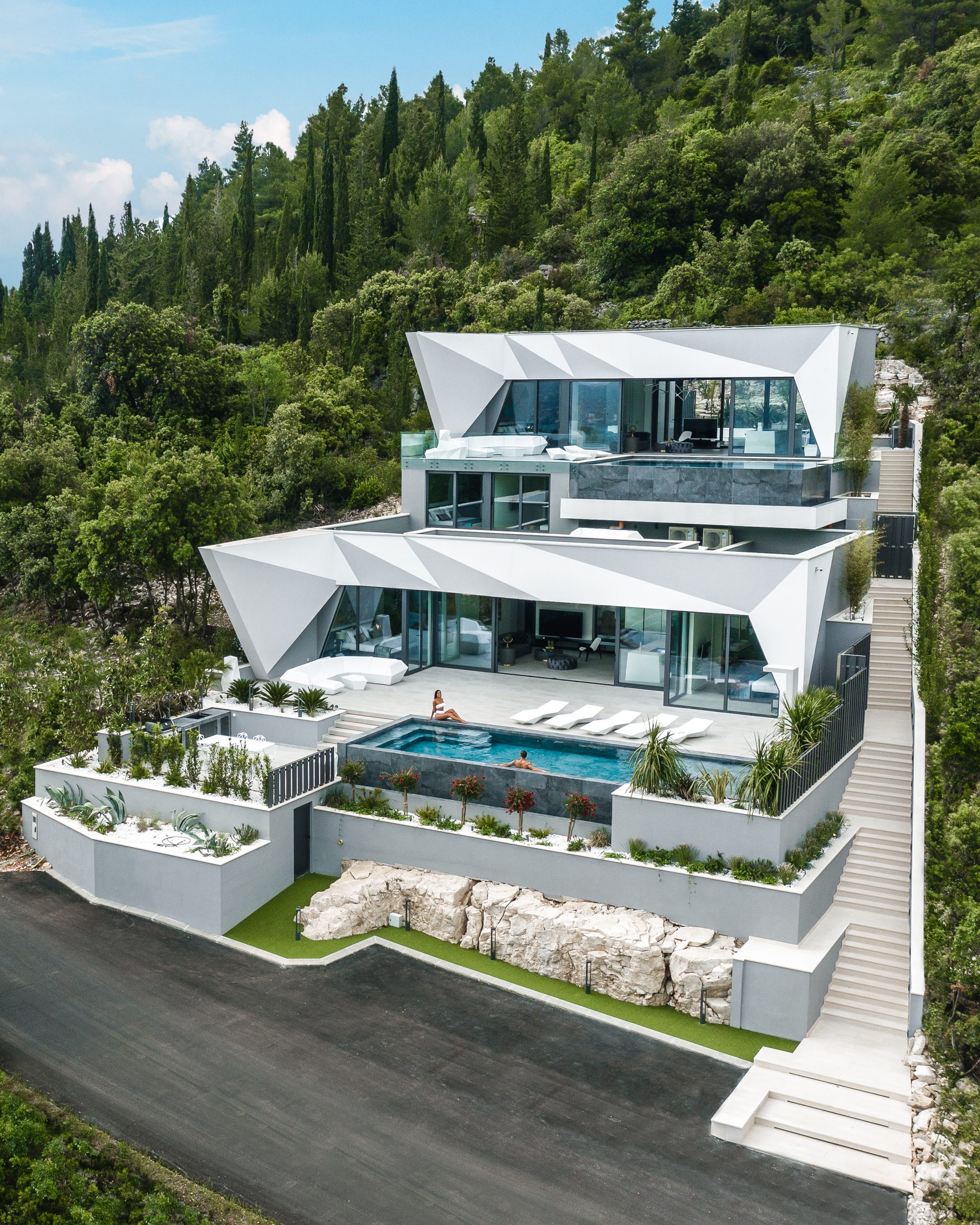 Antoni Barići: The Diamond Villa is unlike any other property in Korčula, Croatia. Its dramatic modern design, features and amenities are breathtaking. Starting with its location, the compound arises seemingly out of the hills providing serene Adriatic sea views. Its contemporary architecture further sets it apart, along with its minimalist, indoor-outdoor design that blends seamlessly into its surroundings. In addition, it offers two luxurious villas that span three levels, giving the buyer and their guests the utmost privacy. Walls of glass open to the terrace for incredible flow and grand entertaining.