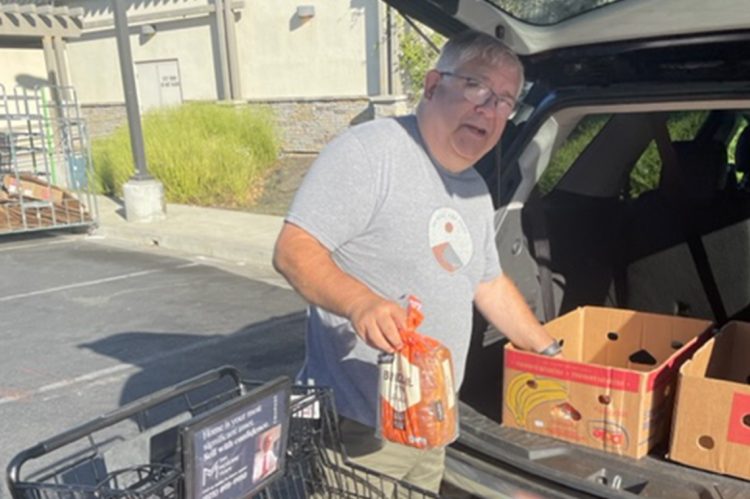Since 2018 he has worked on Friday mornings picking up food close to being out of date from a local Safeway store and delivering it to the Livermore Homeless refuge, Tri-valley interfaith food pantry, and several senior housing communities. So foods that would be composted now provide the hungry with weekly groceries.