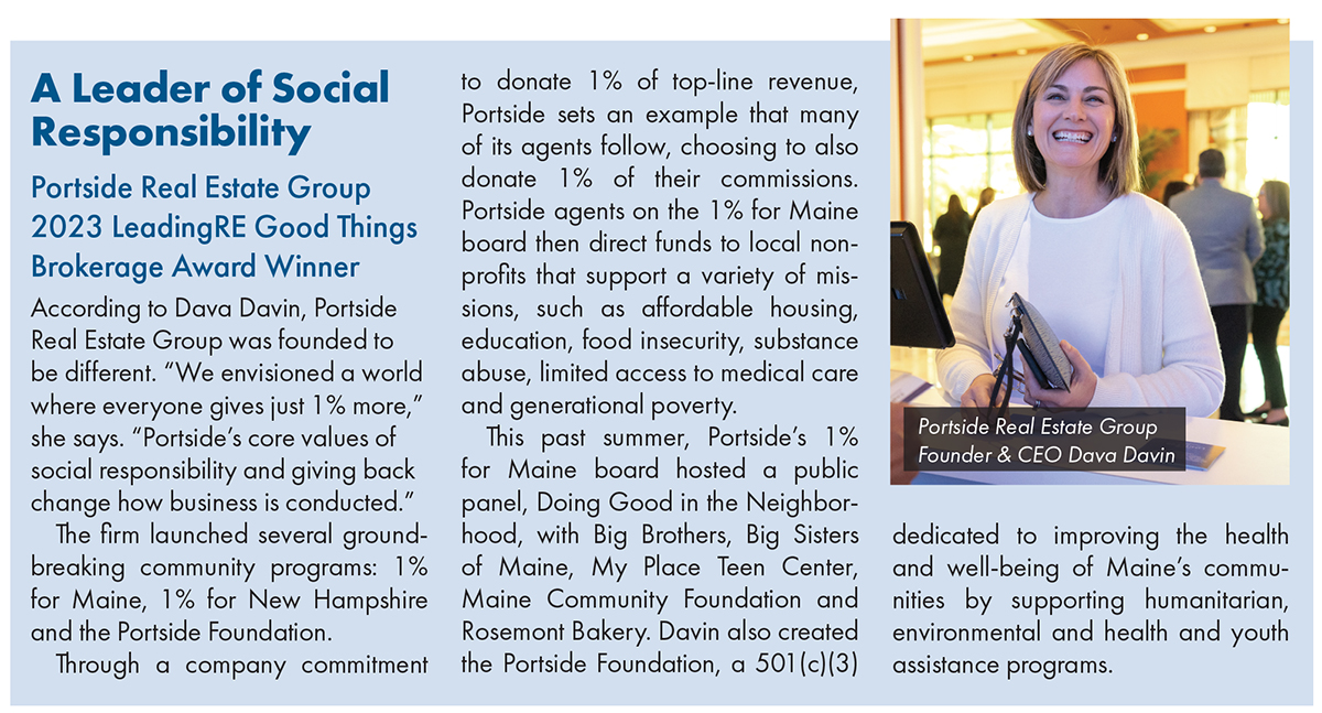 - Promoting members’ community involvement in charitable organizations through the LeadingRE “Good Things” series