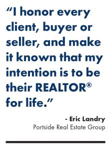 The strong relationships forged with clients is something Landry doesn’t take lightly. “I honor every client, buyer or seller, and make it known that my intention is to be their REALTOR® for life,” he says.
