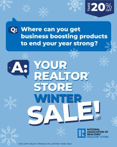 NAR PULSE—Send your agents to the REALTOR® Store to stock up on business-boosting resources that will help them close deals. From now until Dec. 18, select products are 20% off. Happy shopping!