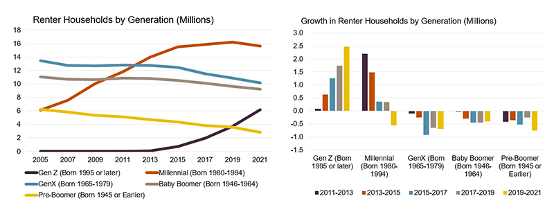While it had previously been reported that millennials had shifted from majority renters to majority homeowners earlier in 2023, according to a recent study by the Joint Center for Housing Studies of Harvard University, millennials’ presence in the rental market has peaked. In fact, 2019 – 2021 was the first three-year period since 2011 when the number of millennial renters decreased (by about half a million).