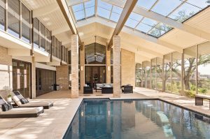 Monica Fabbio: The Bond House is a Great Space because of its architectural significance, luxurious design elements and remarkable location on the south shore of Lake Travis, just 25 minutes from downtown Austin. The waterfront home sits on the tip of the Arkansas Bend, providing residents panoramic views of the lake and the Lone Star State’s famous sunsets. The home also has plenty of highly desired amenities, including a solarium pool, a tranquil courtyard with a waterfall, a walking trail, 200 feet of lake frontage and a two-level dock. The privately-gated four-acre lot has plenty of space for additional structures should the future owners want to add a guest house or barn.