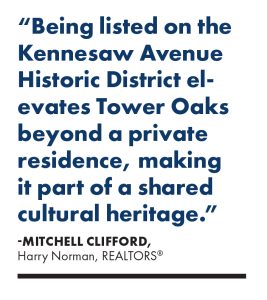 MC: Being listed on the Kennesaw Avenue Historic District elevates Tower Oaks beyond a private residence, making it part of a shared cultural heritage. For buyers, this designation often raises questions. While it does not restrict everyday use, it offers eligibility for preservation incentives and grants. More importantly, it carries a sense of prestige, appealing to those who value history, legacy and the significance of owning a property with such distinction.