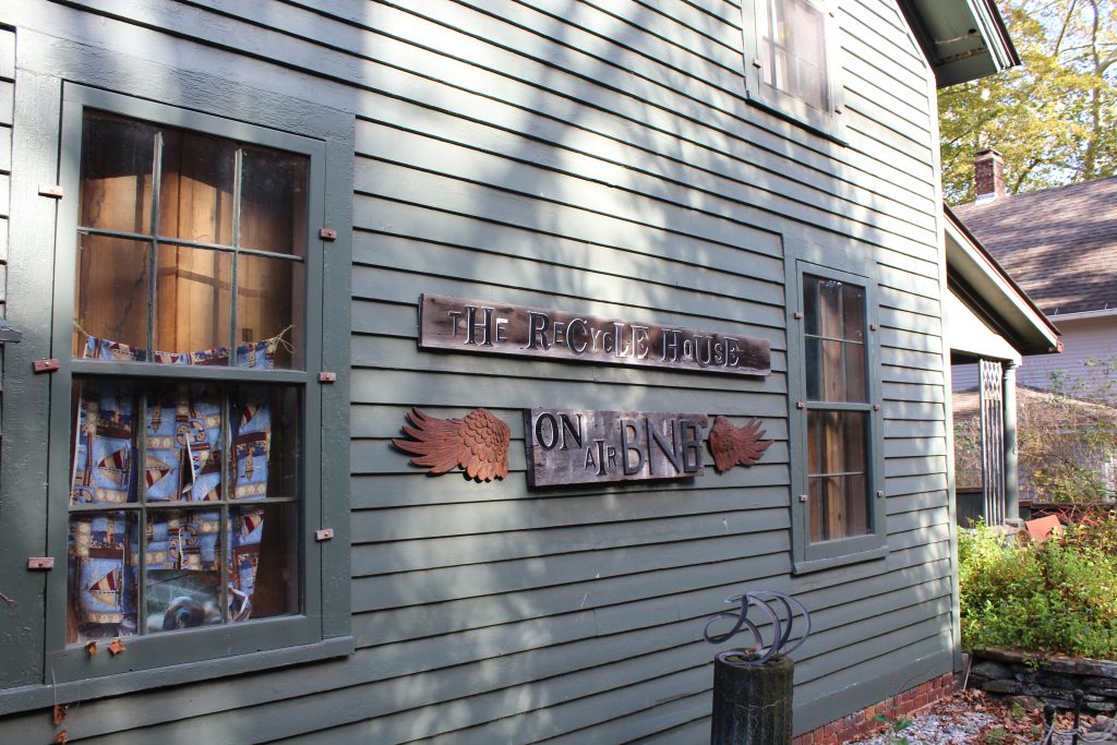 “I had all of these letters in a box that didn’t match, but I thought to myself ‘Why do they need to match?’ says Dr. Senay about the sign affixed to The Recycle House.