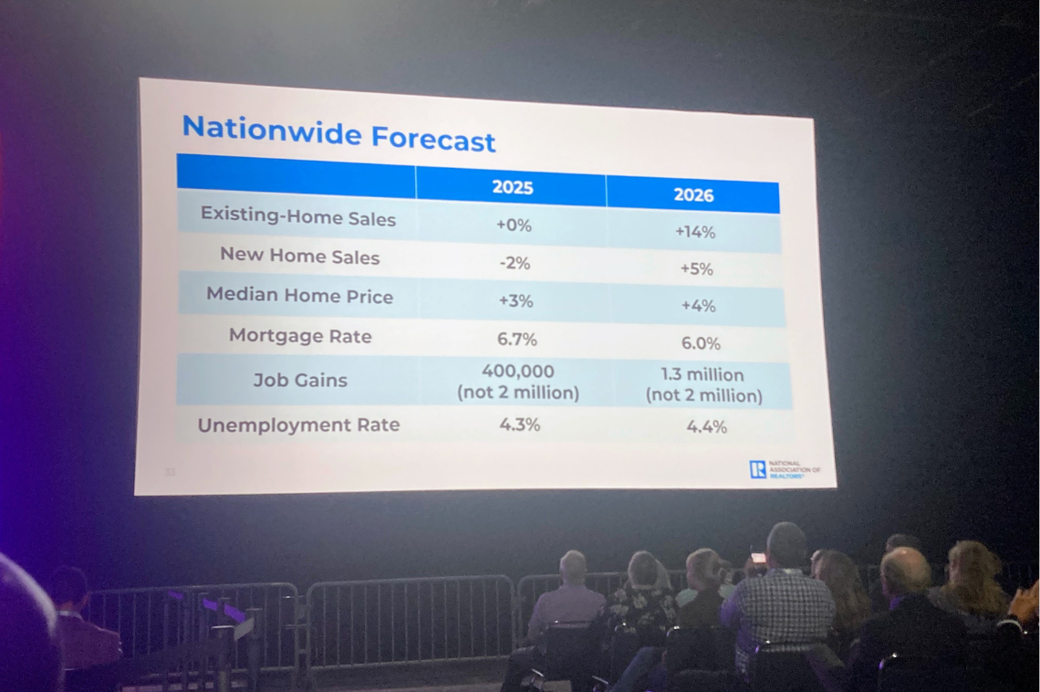 Buoyed by the reopening of the government on Thursday, a bit of optimism was in the air at NAR NXT, where Chief Economist Dr. Lawrence Yun predicted a 14% increase in existing-home sales in 2026, along with a 5% increase in new-home sales, a 4% increase in the median home price, and mortgage rates settling in at 6%.