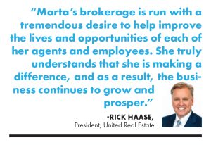 We chose United mostly because they were the first brokerage we talked to that was 100%-commission but still offered everything. It felt like everybody else was saying, “Hey, we’re 100%-commission, but don’t expect much in return” or “You’re going to get all this great training, but you’re going to pay us a 30% to 50% split.” Also, it’s an international company, so they’re much bigger than mom-and-pop shops, and we have boots on the ground. There’s a real office in every city we’re in, so we’re not virtual like a lot of the other 100%-commission brokerages.
