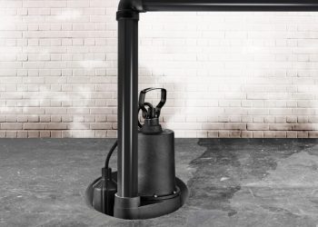A sump pump sits in a small pit on the basement floor. It turns on automatically if it detects a...
