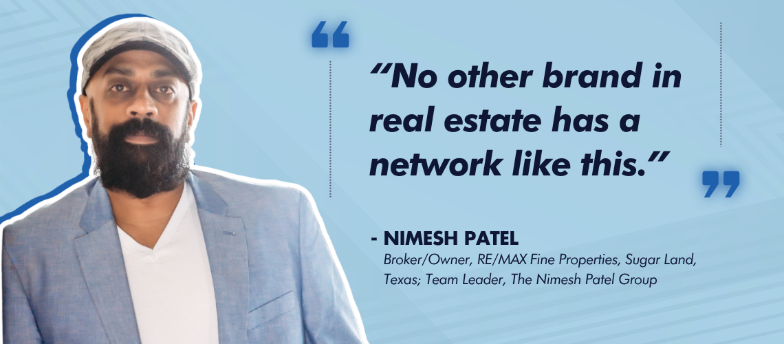 Nimesh Patel, broker/owner of RE/MAX Fine Properties in Sugar Land, Texas, is among a group of social trailblazers supporting the rollout of MAX/Engage. An active and highly visible member of the RE/MAX community, Patel is widely revered for his creative digital marketing tactics that generate business—and the results speak for themselves. His team, The Nimesh Patel Group, is the No. 1 RE/MAX team in Texas.
