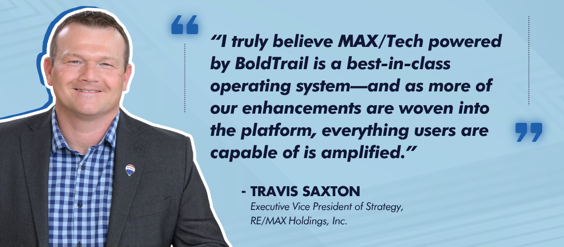 A noteworthy champion of this tech-engaged evolution is Travis Saxton, a longtime industry visionary who joined RE/MAX Holdings in January 2025 as executive vice president of strategy. In his past roles at companies like T3 Sixty and RealTrends, Saxton advised some of the RE/MAX brand’s largest, most prominent brokerages and leaders. Now, he gets to help them tap into tech more directly. “Helping entrepreneurs scale their business through the implementation of innovative technology is my passion—and I’m in the right place to pursue it. I truly believe MAX/Tech powered by BoldTrail is a best-in-class operating system—and as more of our enhancements are woven into the platform, everything users are capable of is amplified.”
