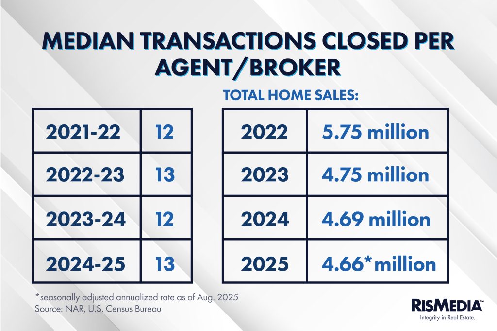 Regionally, agents in the Midwest were more productive on average, with 19 transactions per agent last year, while the Northeast saw a median of 15. Agents in the South and West closed a median of 12 transactions.