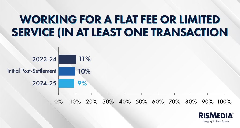 Another shift that many expected to emerge from the settlement was agents—particularly buyer agents—working for a flat fee or offering some sort of a la carte service. Initial data actually showed a slight decrease in agents or brokers working under these auspices, and after a full year, there is still no significant movement.