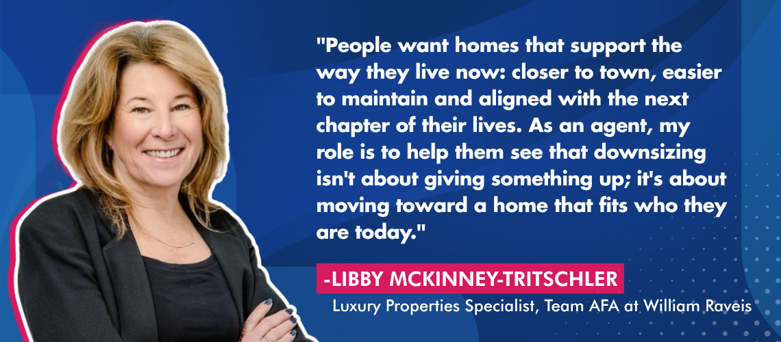 “People want homes that support the way they live now: closer to town, easier to maintain and aligned with the next chapter of their lives,” she says. “As an agent, my role is to help them see that downsizing isn’t about giving something up; it’s about moving toward a home that fits who they are today.