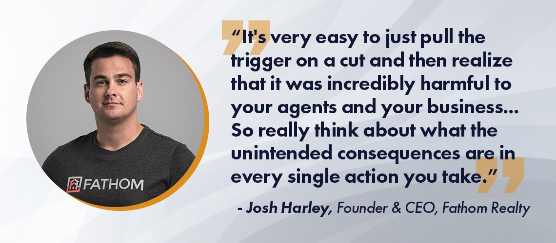 Josh Harley, founder and CEO of McKinney, Texas-based Fathom Realty, admits that it was hard to make cuts, but necessary during turbulent times. He tries to be as sensitive as possible.