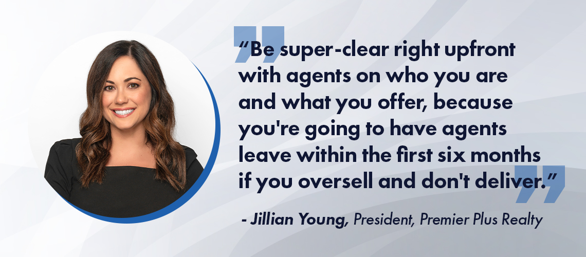 Jillian Young, president of Premier Plus Realty in Bonita Springs, Florida, stresses that brokerages need to show their true colors to agents, the ones currently on the roster and the ones they’re trying to recruit.