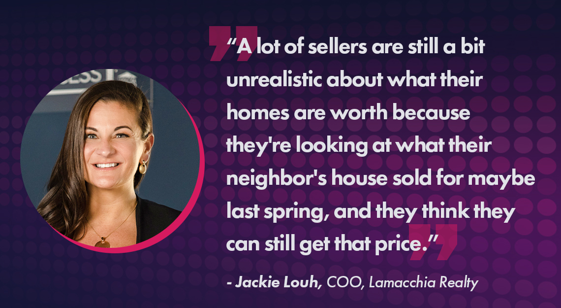 “Again, it really just comes down to educating your sellers and your buyers,” she said. “A lot of sellers are still a bit unrealistic about what their homes are worth because they’re looking at what their neighbor’s house sold for maybe last spring, and they think they can still get that price. And in some markets they might still be able to do that. But speaking broadly, that’s a big issue that we’re seeing along with sellers not factoring in the higher interest rates compared to where they’ve been in years past. So they don’t fully understand that the buyer’s affordability has changed.
