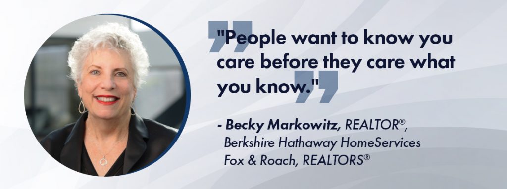 “Being a REALTOR® is wonderful, and I love what I do,” says Markowitz, “but I think being a caring person is even more valuable. People want to know you care before they care what you know.”