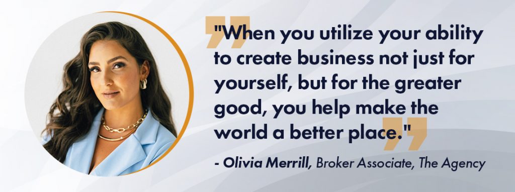 “When you utilize your ability to create business not just for yourself, but for the greater good, you help make the world a better place,” says Merrill. “This creates a ripple effect that brings you more business, because what you are creating is not just benefiting you.”