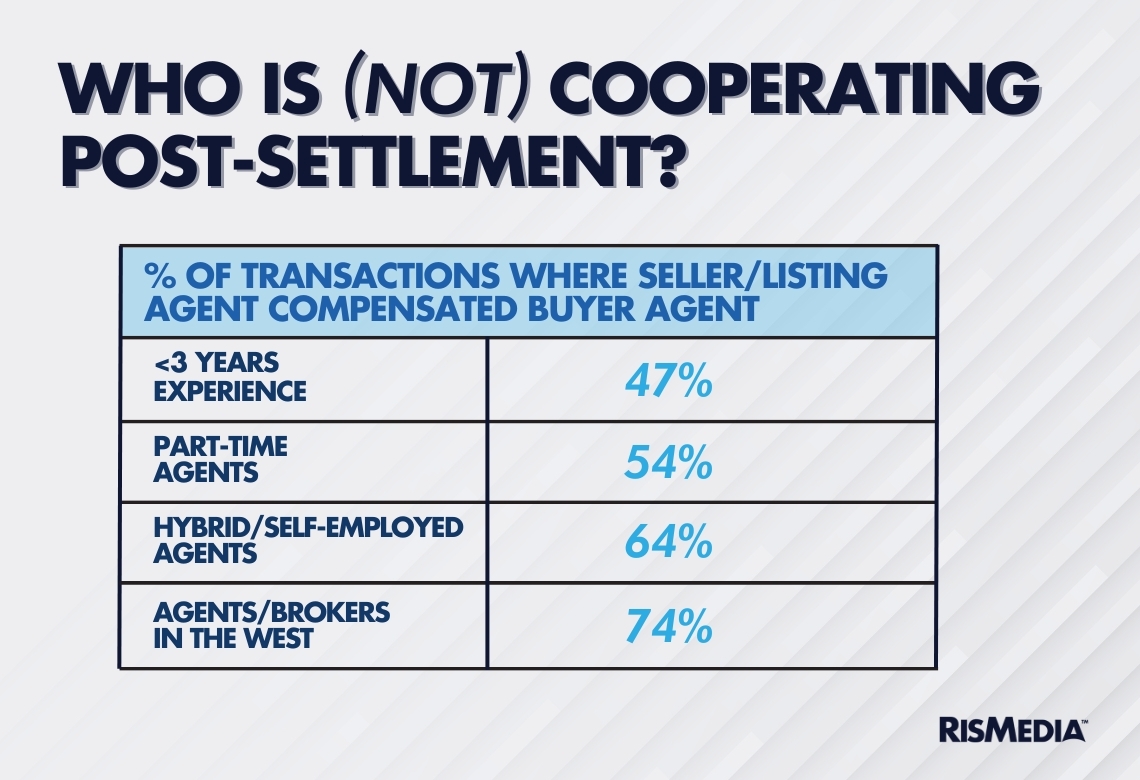 Again, the reasons for these trends are unclear. But one notable, and potentially surprising revelation is that if there was any sort of movement toward flat fees or limited services, it was not tied directly to the settlement changes. And at a higher level, it appears that at least for now, the prediction that a significant number of agents would start offering flat-fee services due to the settlement was overstated.