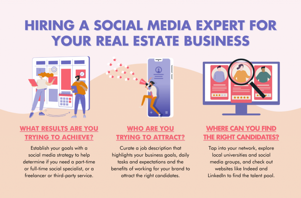 From determining the skillsets you need to understanding the roles and responsibilities, here are some things to consider before hiring a social media expert, manager or specialist for your real estate business: